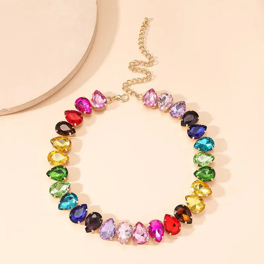 Pink Geometric Heart Crystal Choker Necklace for Women