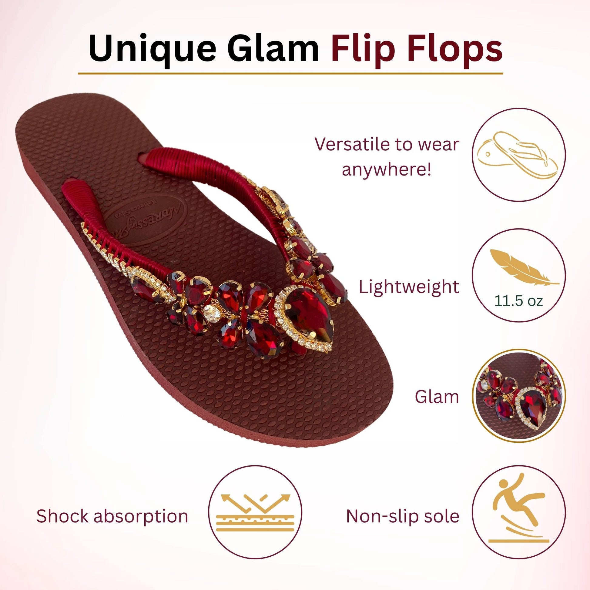 AdDRESSingMe™ Luxurious Burgundy Flip Flops With Rhinestones - Bold, Soft & Beautiful